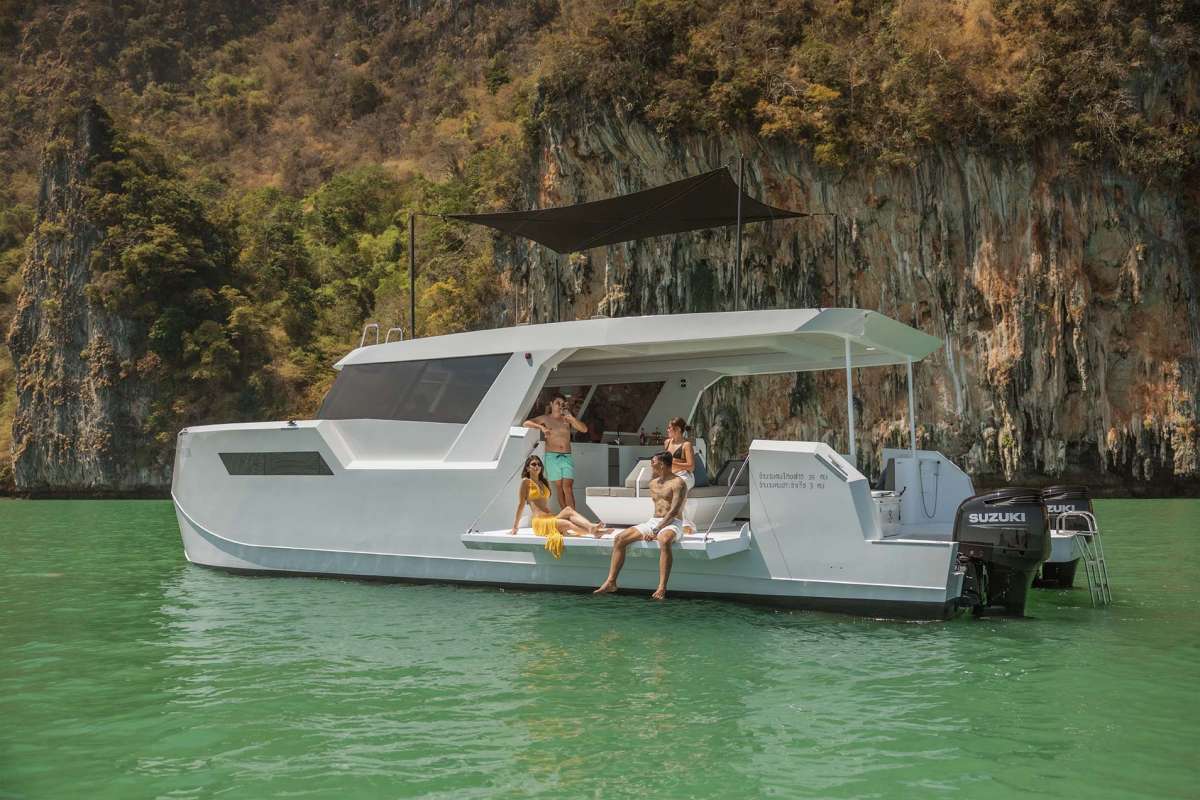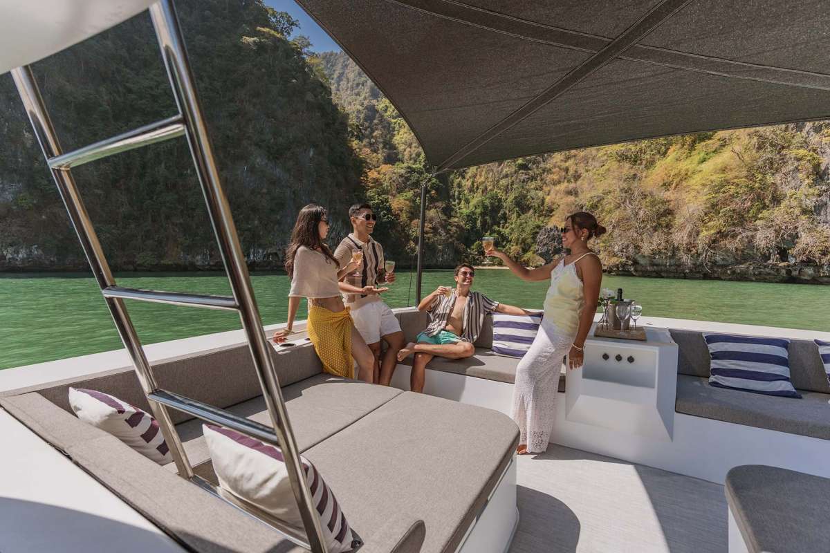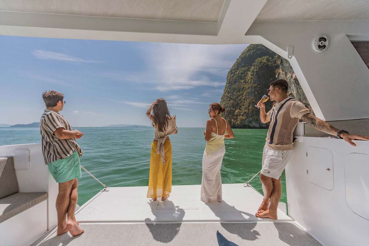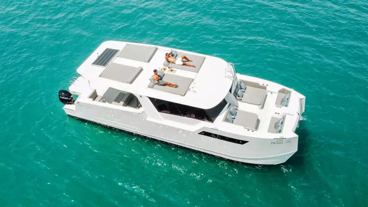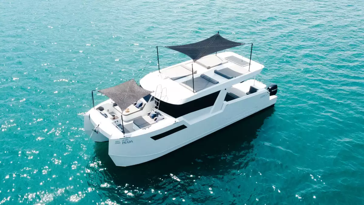 Meet PRADA, our sleek 50ft power catamaran, built in 2025, now available for charter in Phuket. Designed for guests who want space, stability, and effortless style on the water, PRADA delivers a premium yachting experience from the moment you step aboard. Her wide beam provides exceptional comfort, with generous seating areas perfect for relaxing, socializing, or soaking up the sun. The modern design is paired with smooth, efficient performance, making cruising calm and enjoyable even over longer distances. Whether you’re anchoring in a secluded bay, island hopping with friends, or hosting a special celebration, PRADA adapts effortlessly to every occasion.