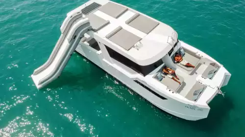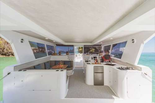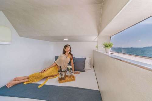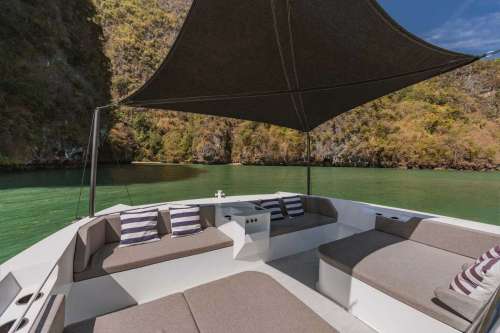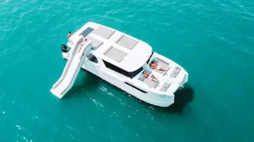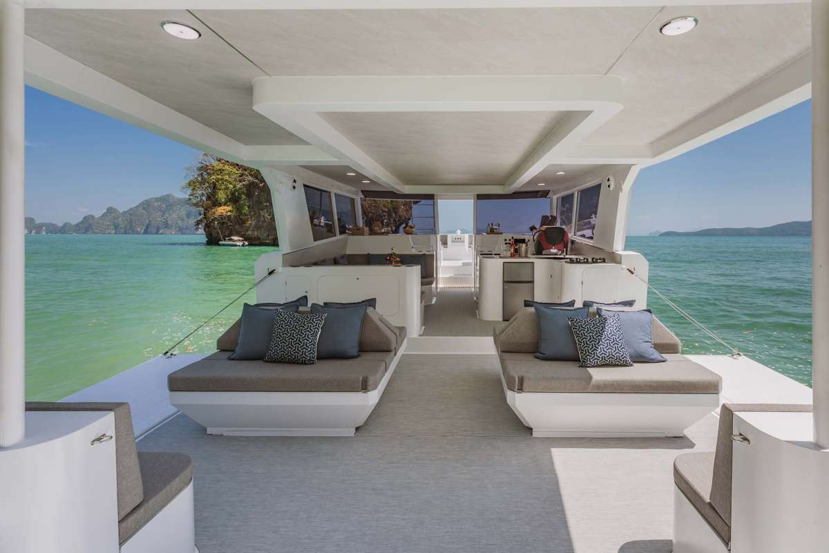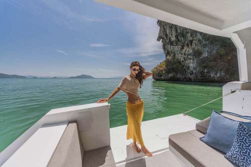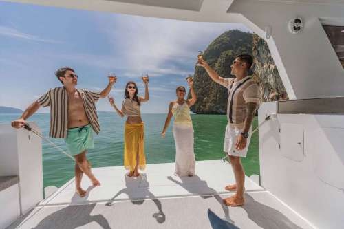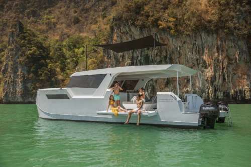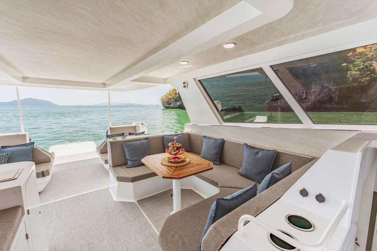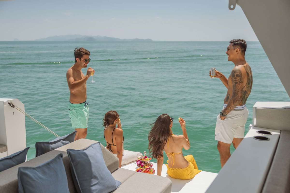 Meet PRADA, our sleek 50ft power catamaran, built in 2025, now available for charter in Phuket. Designed for guests who want space, stability, and effortless style on the water, PRADA delivers a premium yachting experience from the moment you step aboard. Her wide beam provides exceptional comfort, with generous seating areas perfect for relaxing, socializing, or soaking up the sun. The modern design is paired with smooth, efficient performance, making cruising calm and enjoyable even over longer distances. Whether you’re anchoring in a secluded bay, island hopping with friends, or hosting a special celebration, PRADA adapts effortlessly to every occasion.